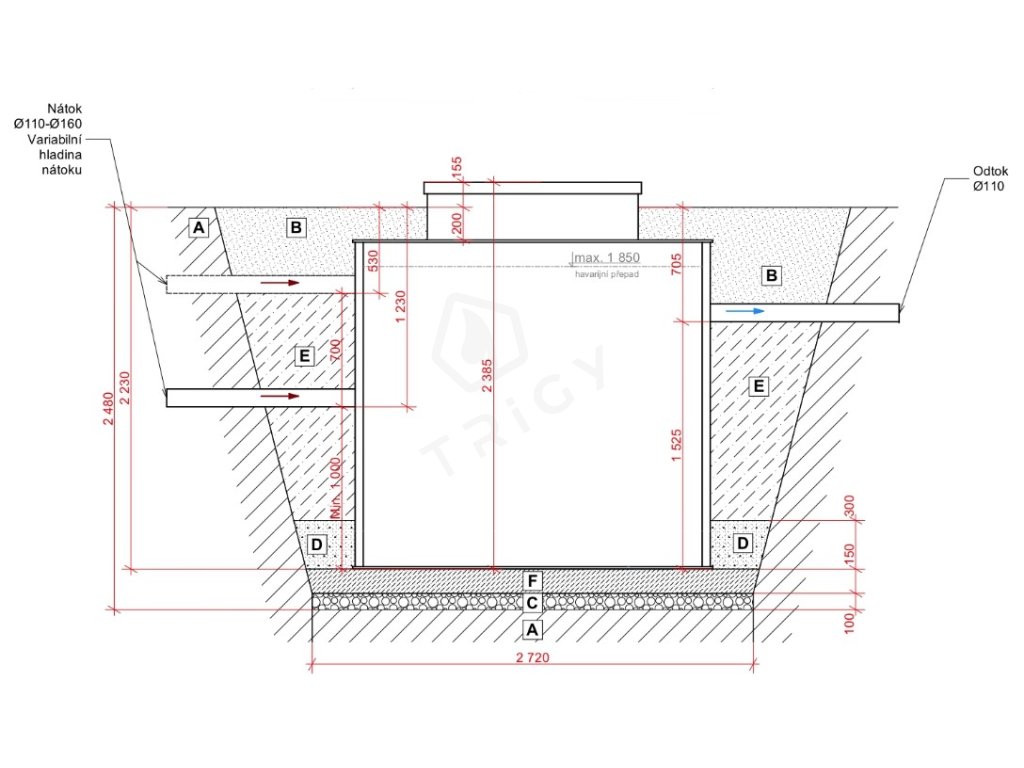 Max. denní nátok | až 6 000 L (6 m³/den) |