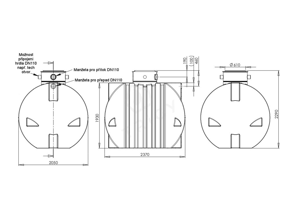 Objem | 2100 L / 2,1 m3 | 4000 L / 4,0 m3 | 6000 L / 6,0 m3 |