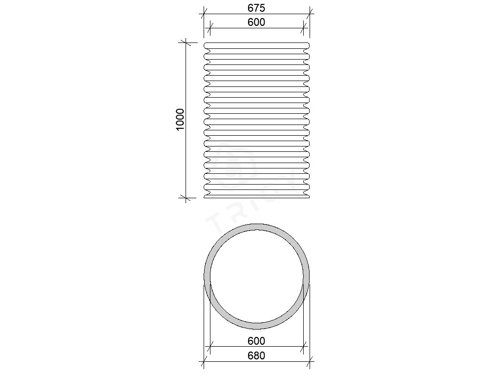 - Vnitřní průměr nástavce je 600 mm. Osazovací lem má vnitřní průměr 675 mm.