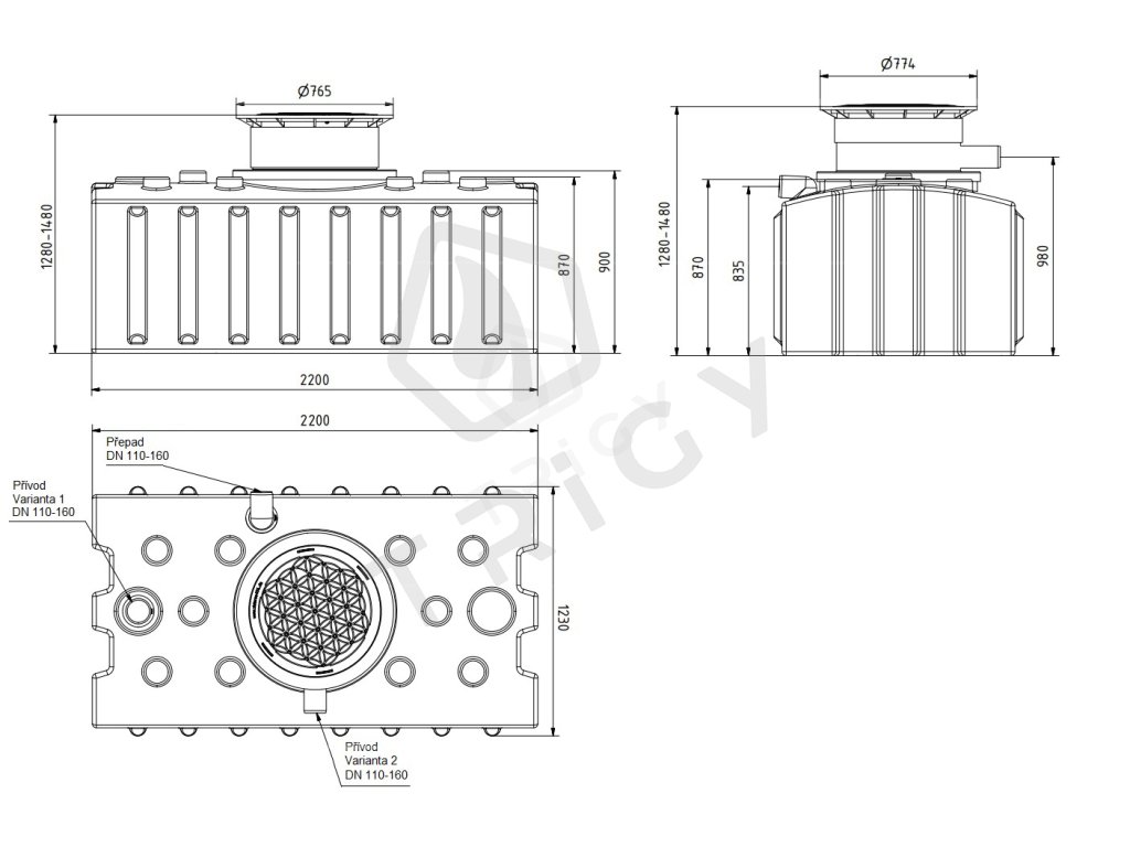 Objem | 2000 L / 2,0 m3 | 4000 L / 4,0 m3 | 5000 L / 5,0 m3 |